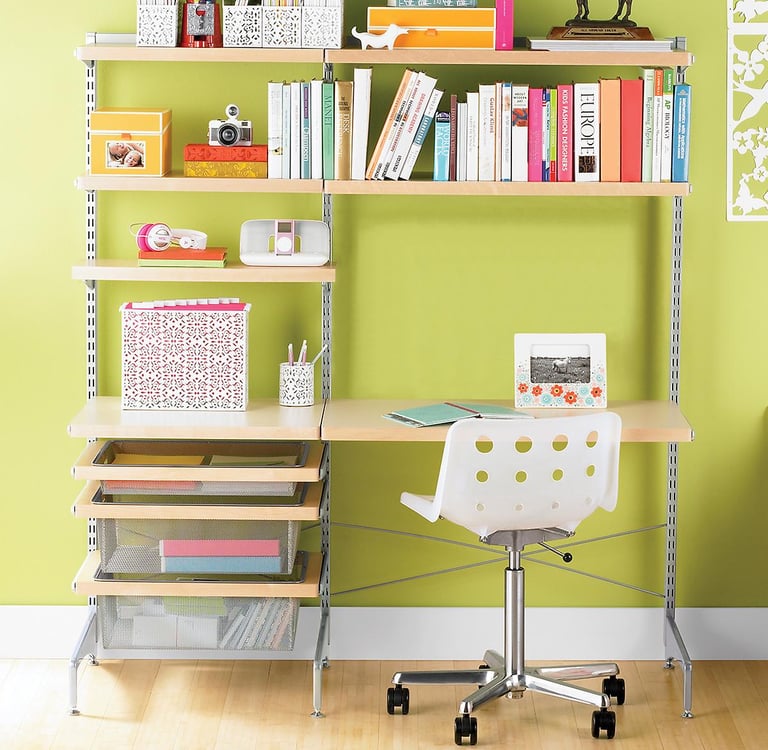 Elfa ypač patogi, jeigu vienoje erdvėje turi dirbti keli žmonės, o vietos nėra labai daug. Erdvę galima padalinti prie sienos montuojant lentynas, kurios bus naudojamos kaip darbo stalas.